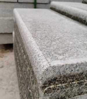 黃銹石磨邊踏步采用湖南黃銹石加工制作而成,湖南黃銹石表面看上去好像有很多的鐵銹形成的黃色斑點,因此得名。黃銹石磨邊踏步的制作流程如下:首先將黃銹石用大型的多片劇將黃銹石荒料切割成50厚的大毛板,再將黃銹石毛板用大型磨光機拋光其表面形成黃銹石光面大板材,然后再用紅外線中切機切割成客戶下單的規格,然后再用專業的磨邊機對黃銹石磨邊就完成了。拋光后的黃銹石顏色更加純正,良好的裝飾效果受到眾多消費者的青睞和認可,黃銹石光面踏步石廣泛地應用于別墅園林鋪裝之中。
