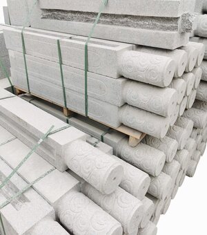 銀點白麻欄桿柱頭部造型可以多種多樣,大多分為以下幾種:圓頭,素方頭,蓮花頭,獅子頭,石榴頭,云紋頭等。上圖中的白麻欄桿柱為簡單的云紋頭,是采用人工手工雕刻而成。我廠可以根據客戶要求定制各種造型和圖案的麻石欄桿柱,歡迎前來考察。